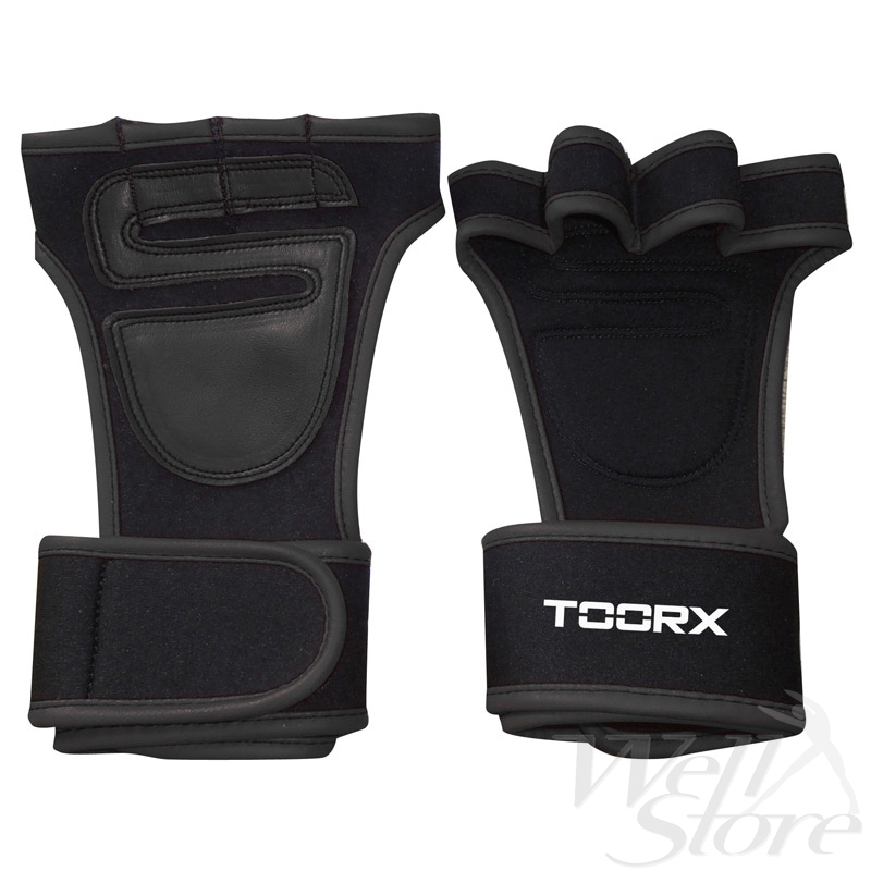 Toorx Grip Pad con polsiera sono studiati per afferarre sldamente manubri e blinacieri.